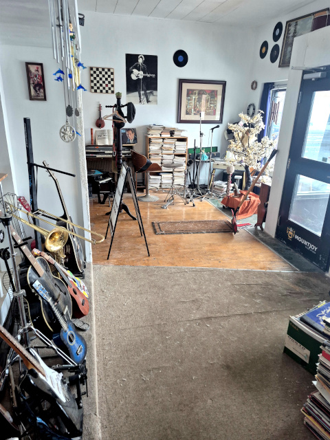 The front entrance of Mountjoy Music Studio where you can find used musical instruments and other donated items for sale.